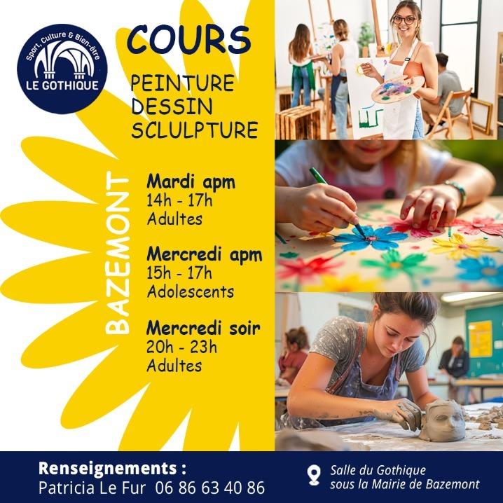 Les cours ont lieu Salle du Gothique (escalier qui descend à gauche en entrant dans la cour de la mairie)