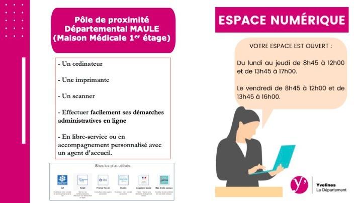 Cet espace est conçu pour aider les personnes souhaitant effectuer des démarches administratives en ligne, qu’elles soient autonomes ou peu familières avec l’informatique. Un agent d’accueil départemental est également disponible pour accompagner ceux qui en ont besoin, aux horaires suivants : 8h45 à 12h00 et 13h45 à 17h00 (16h00 le vendredi).
