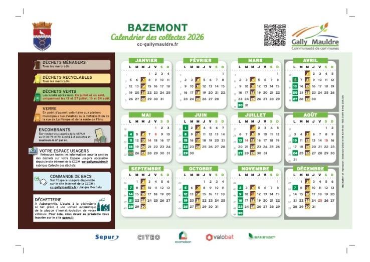 Vous y trouverez le calendrier de collecte de Bazemont, les informations pratiques sur le tri sélectif, l’accès à la déchetterie d'Aubergenville… et vous pourrez y gérer vos commandes de bacs. Il sera pleinement opérationnel en début d’année 2026.