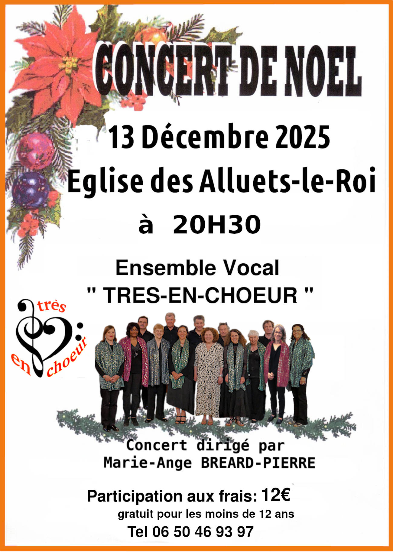 Notre prochain concert de Noël aura lieu le 13 décembre 2025 à 20h30 à l'Eglise Saint Nicolas des ALLUETS-le-ROI.