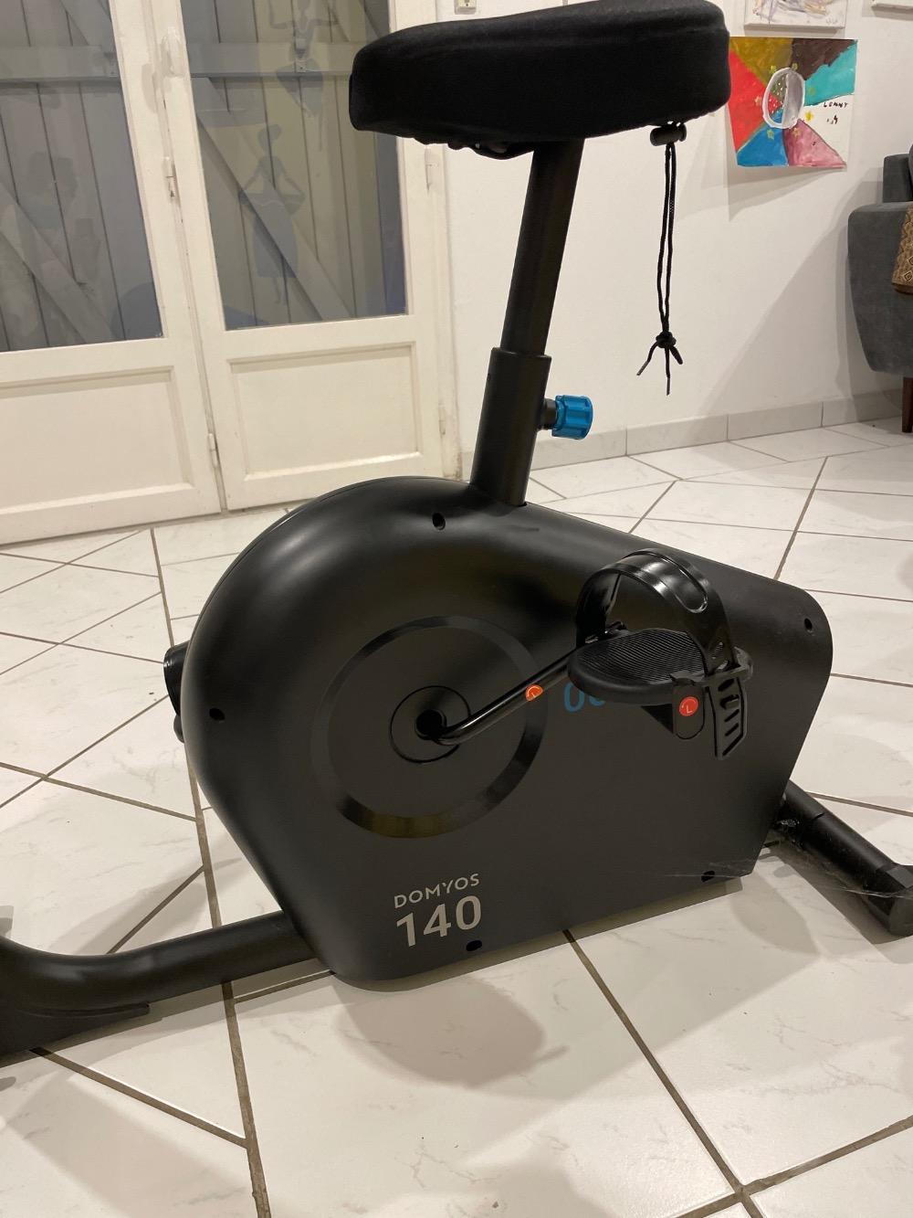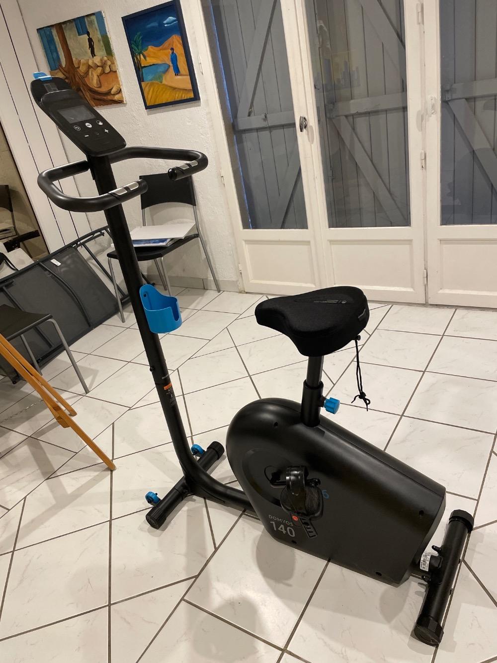 Vélo d’appartement Décathlon Domyos 140 en excellent état, très peu servi. Avec roulettes pour le déplacer facilement et housse de selle pour plus de confort.